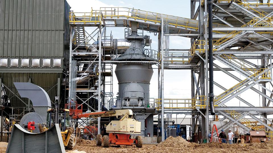 同力重型機械有限公司,煤立磨機可應(yīng)用于水泥、電力、鋼鐵、冶金等行業(yè)。煤立磨機由于其特殊的工藝和結(jié)構(gòu),生產(chǎn)過程中粉塵少,噪音小,產(chǎn)出的煤粉具有高效的級配和優(yōu)良的燃燒性能。我公司生產(chǎn)的煤立磨機工藝簡單,設(shè)備緊湊,煤粉細(xì)度可達(dá)80 μmR 3%,且細(xì)度穩(wěn)定,粒度均齊。煤立磨機由電動機驅(qū)動,通過行星減速機帶動磨煤機磨盤轉(zhuǎn)動,磨盤上的2-4個磨輥在磨盤的帶動下轉(zhuǎn)動,經(jīng)落煤管進(jìn)來的原煤分布在磨盤上,由于液壓加載力的作用,磨輥與磨盤之間產(chǎn)生擠壓使大顆粒原煤被壓碎??磕ポ伵c磨盤的相對運動產(chǎn)生的滑動摩擦力實現(xiàn)小顆粒煤被碾碎;原煤在磨內(nèi)被碾磨的同時,被通入立磨機的熱風(fēng)(一般在300℃以下)烘干掉原煤的水分,達(dá)到成品煤粉規(guī)定的要求;碾磨后的煤粉,通過一次風(fēng)輸送進(jìn)入分離器進(jìn)行分離。分離出合格的煤粉被輸送至煤粉倉,不合格的粗煤粉返回到磨內(nèi)重新進(jìn)行研磨。